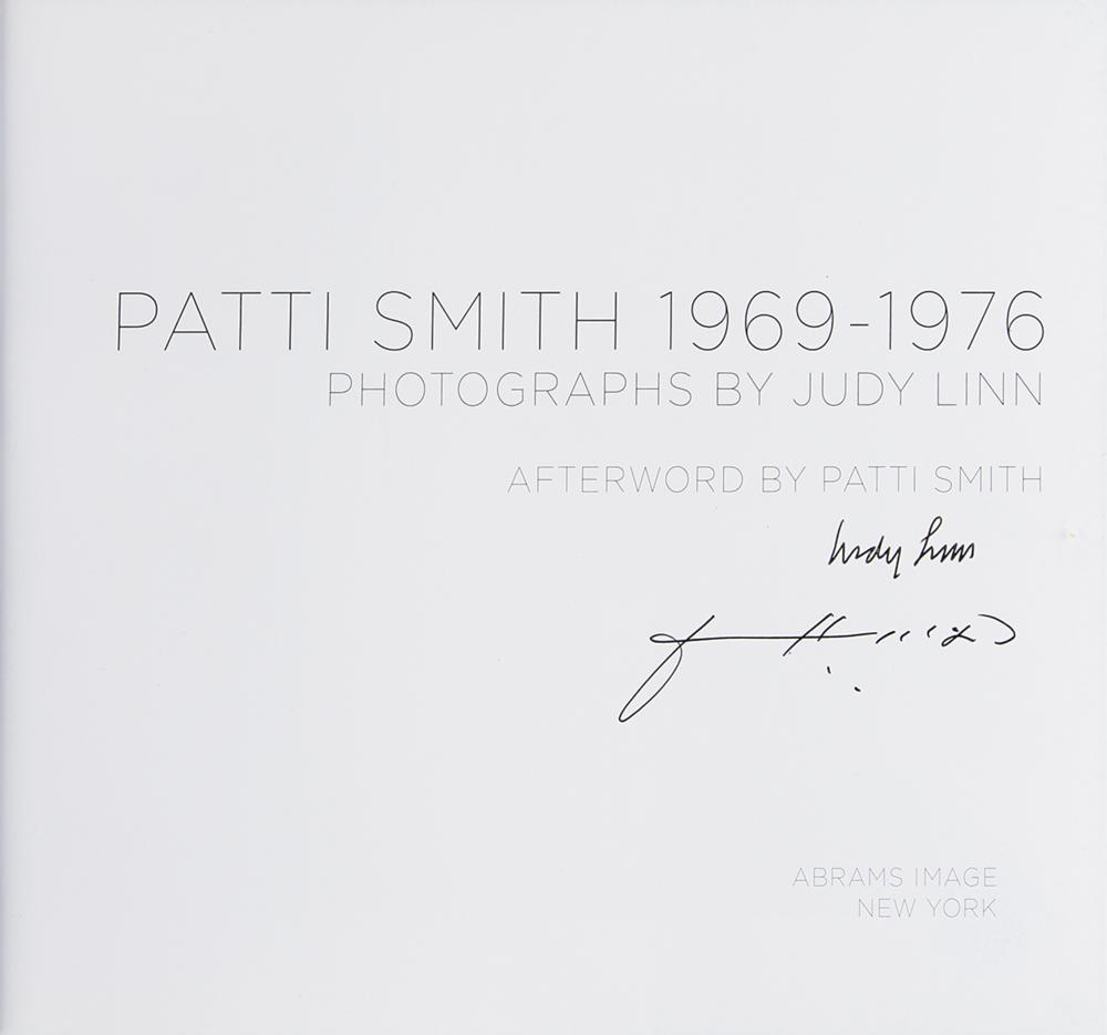 Five items signed in ink or felt tip by acclaimed poet and musician Patti Smith, including two first edition books—Patti Smith: Complete and Patti Smith: 1969-1976 (also signed by photographer Judy Linn)—and three photos ranging in size from 8 x 10 to 11 x 14, with one matted. In overall very good to fine condition, with scuffing and a small area of surface loss to the Horses photo.