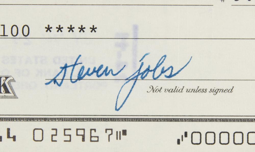 Thus, the Apple-1 was one of the first completely assembled 'personal' computers that simply worked out of the box with a few accessories that could be purchased from a local electronics store (a power supply, case, keyboard, and monitor were not included). All together, over a span of ten months or so, Jobs and Wozniak produced about 200 Apple-1 computers and sold 175 of them. A superb check signed by the innovative personal computing pioneer.