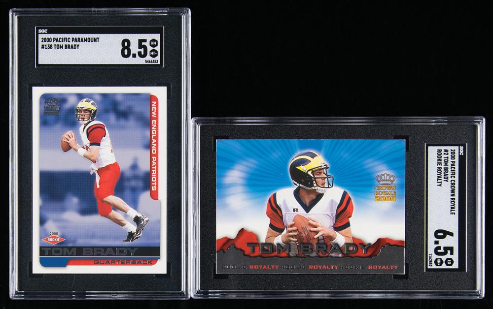 2000 Pacific Crown Royale and Paramount Tom Brady Rookie Cards SGC 6.5 and 8.5 Football Cards
