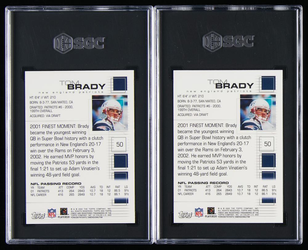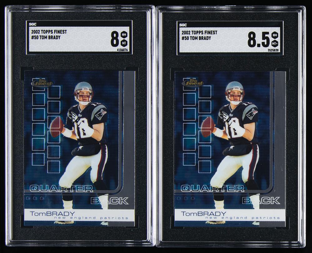 Nice pairing of cards from the season after Brady became the youngest Super Bowl-winning quarterback in NFL history, graded by SGC NM-MT 8 and NM-MT+ 8.5.