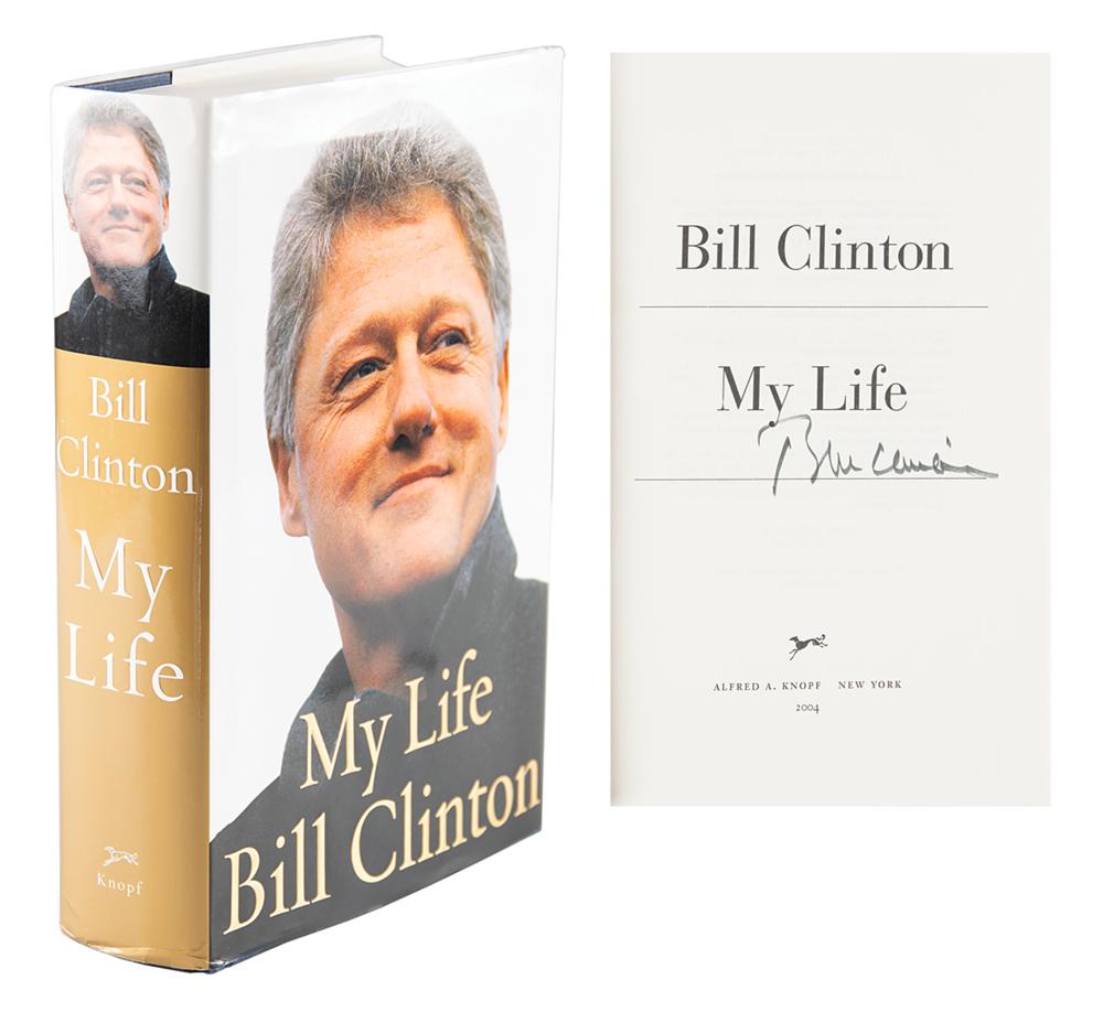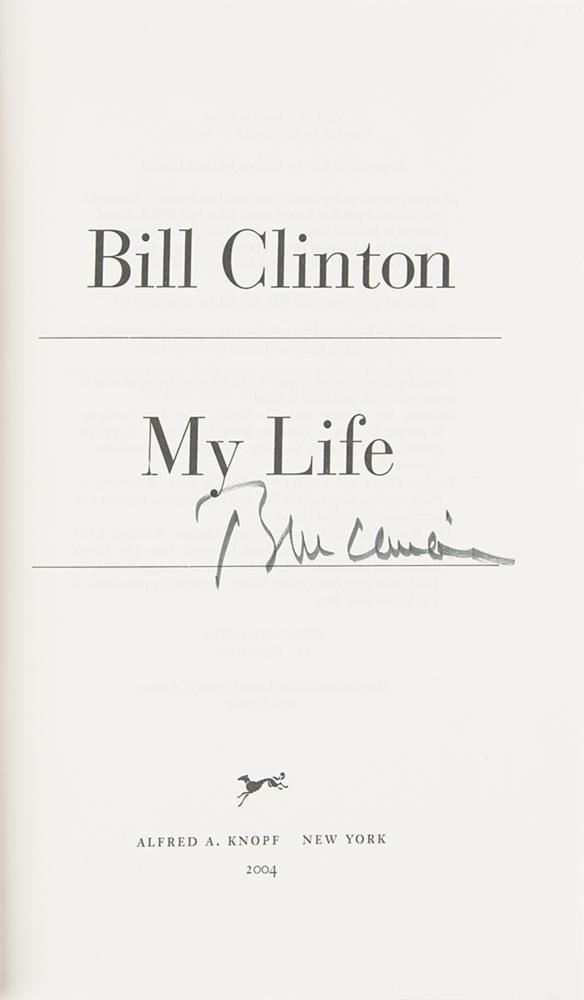 Signed book: My Life. First edition. NY: Alfred A. Knopf, 2004. Hardcover with dust jacket, 6.5 x 9.5, 957 pages. Signed on the title page in black felt tip by Bill Clinton. In fine condition. Accompanied by a flyer, receipt, and photo from Clinton's book signing at Barnes & Nobles on June 22, 2004.