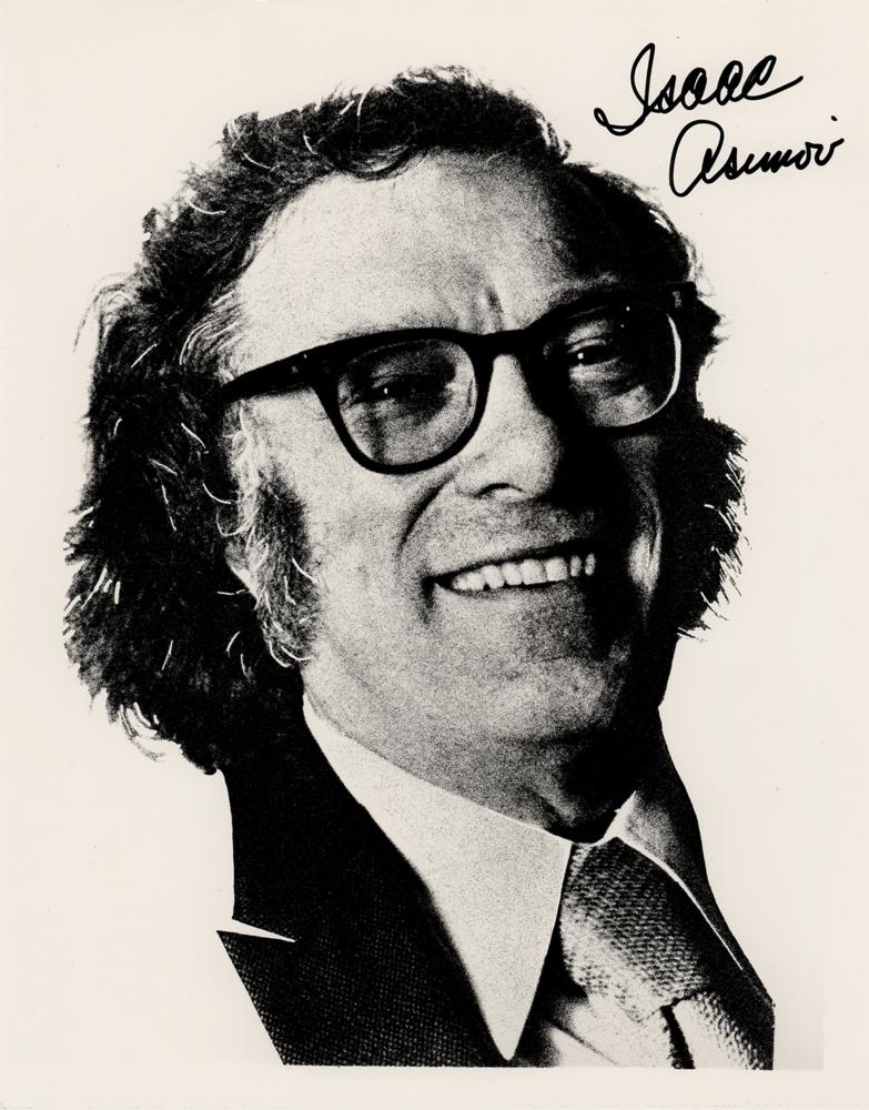 Glossy 8 x 10 head-and-shoulders photo of the prolific sci-fi author, signed in black felt tip, "Isaac Asimov." In fine condition.