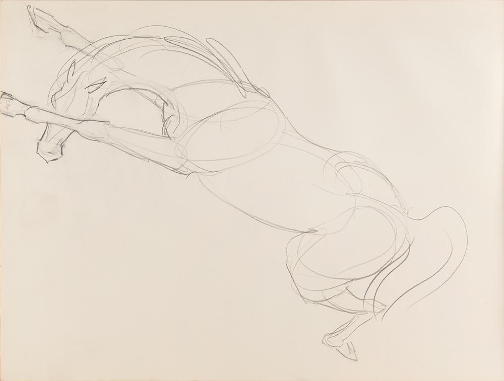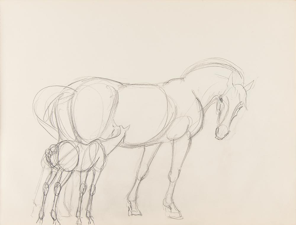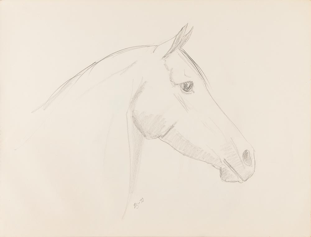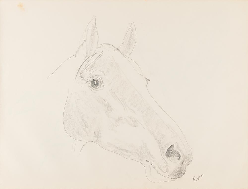 Sedgwick was admitted to the psychiatric ward of the Santa Barbara Cottage Hospital in August of 1969 after being arrested for drug possession. It became her primary residence for the remainder of that year and the next when she also finished filming Ciao! Manhattan in nearby Arcadia, California. It?s likely that Sedgwick used this sketch pad as a patient there. The inscription to ?Bobby? remains unknown, although Sedgwick shared important relationships with at least three people with that first name: the musician Bob Dylan, his associate Bob Neuwirth, and her older brother, Bobby, who died in a motorcycle accident in 1965. Like many of the other offered lots, horses remain a focal point in Sedgwick?s sketch pad.