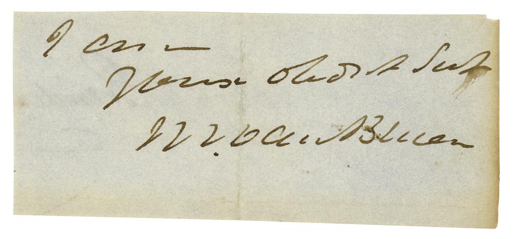 Ink signature, "Your most obd't serv't, M. Van Buren,” on an off-white 5 x 2.25 sheet. In fine condition, with a central vertical fold.