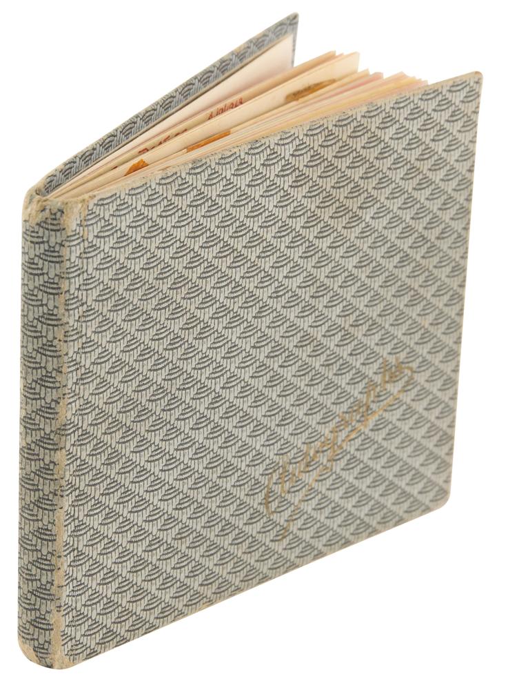 Circa 1960s vintage autograph book, 4.75 x 4, signed inside by the Beatles on the same page in ballpoint by John Lennon, Ringo Starr, George Harrison, and Paul McCartney. The book also contains the signatures of Billy J. Kramer and the Dakotas, the Karl Dever Trio, Joe Brown, Mike Pender, and the Tornadoes. Collector’s notation dates the signatures to the Gaumont Cinema in Worcester, England, on September 4, 1963, part of a four-night mini-tour promoted by John Smith during which the Beatles were paid £250 per night. In fine condition. Accompanied by a certificate of authenticity from Tracks.