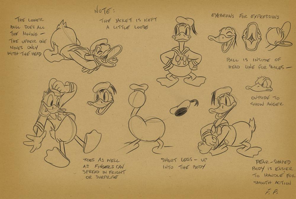 Frank Follmer preliminary model sheet drawing of Donald Duck Preliminary Model Sheet