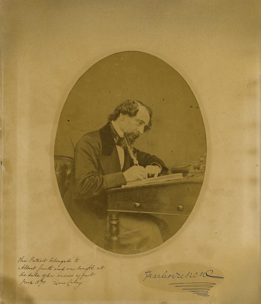 Striking oversized 1858 signed portrait of Charles Dickens hard at work