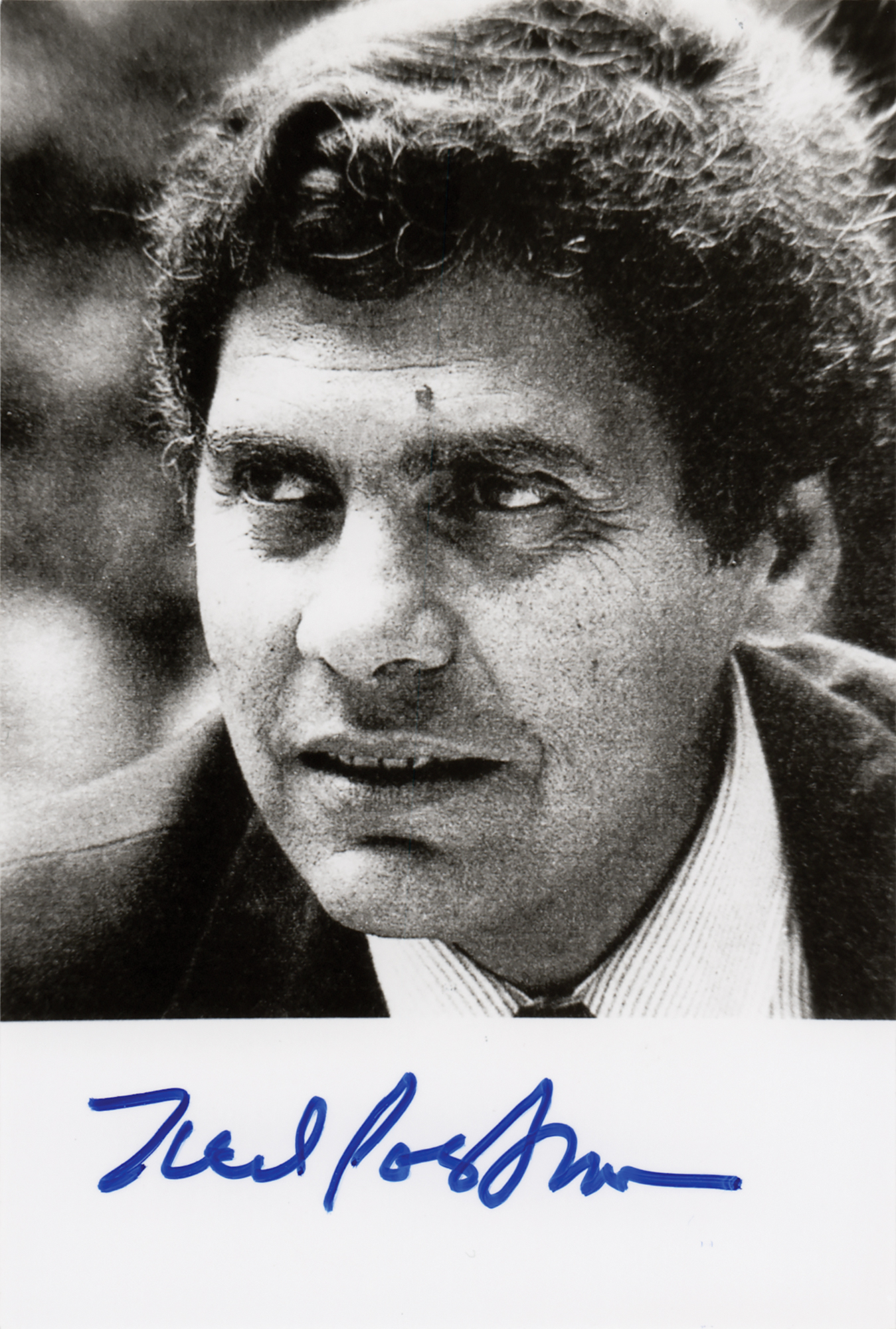 American media theorist and cultural critic (1931-2005) known for his books on technology and education, including Amusing Ourselves to Death (1985) and Technopoly: The Surrender of Culture to Technology (1992). Glossy 3.5 x 5 head-and-shoulders photo, signed in blue felt tip. In very fine condition.