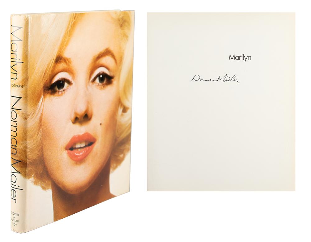 Signed book: Marilyn: A Biography. First edition. NY: Grosset and Dunlap, 1973. Hardcover with dust jacket, 9.5 x 11, 270 pages. Signed on the half-title page in black ink by Norman Mailer. In fine condition, with some light wear to the clipped dust jacket and some mild toning to a few page edges.