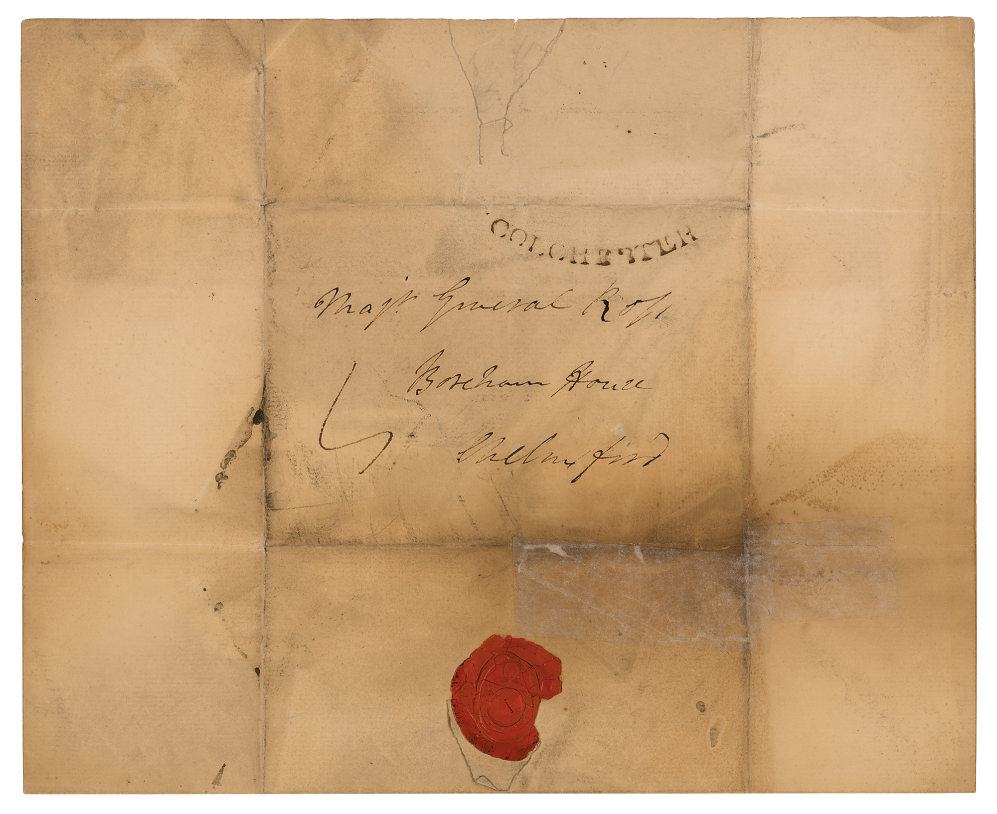 British general (1729-1814) who, despite defeating George Washington in a number of battles, could not force a surrender and returned to England in 1778. ALS signed “W. Howe,” one page, 7.75 x 9.75, March 13, 1799. Handwritten letter to Maj. Gen. Ross, in part: "The two flank companies of the Cambridgeshire being impatient to join their regiment in the expectation of an early removal to Ireland, I have ordered them to march on Saturday next, which I hope will not put you to any inconvenience providing barrack room for them." Addressed on the integral leaf in Howe's hand. In very good to fine condition, with staining, toning, and some archival repairs and reinforcements.
