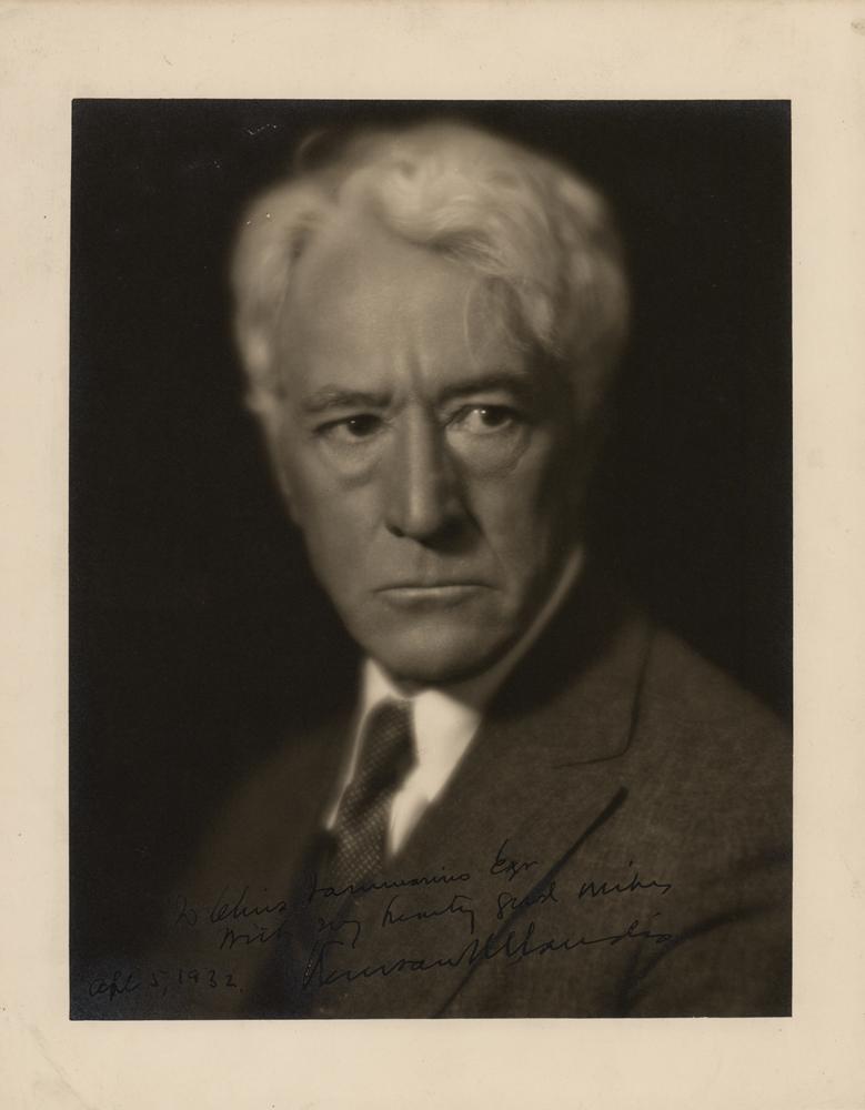 First baseball commissioner (1866-1944), who was elected to office on November 12, 1920, and helped restore public confidence in baseball following the Black Sox scandal of 1919. He also served as a United States federal judge from 1905 to 1922. Scarce vintage matte-finish 9 x 11.25 portrait of Judge Landis, signed and inscribed in fountain pen, "To Chris Iammarino?with my hearty good wishes, Kenesaw M. Landis, April 5, 1932.” In fine condition, with scattered light silvering to darker areas of the image.