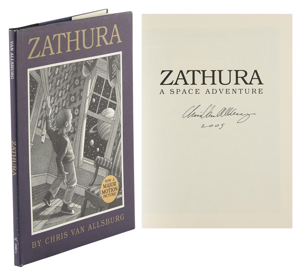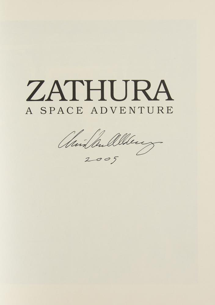 Signed book: Zathura. Later printing. Boston: Houghton Mifflin, 2002. Hardcover with dust jacket, 9.25 x 12. Signed on the half-title page in black felt tip, "Chris Van Allsburg, 2005." In fine condition.