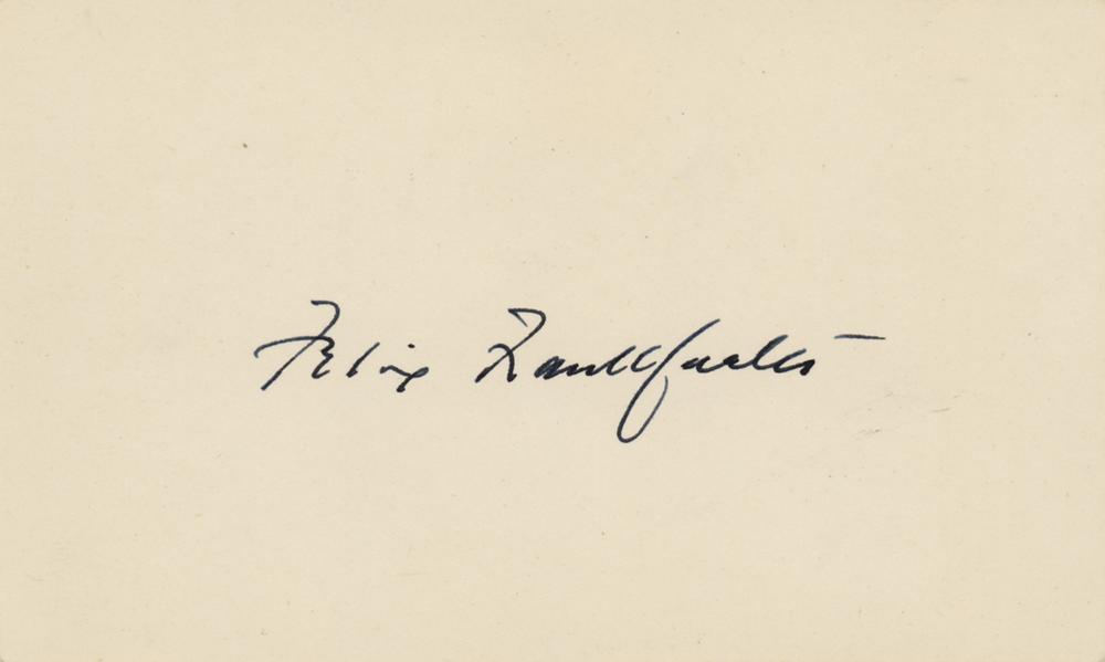 Associate Justice of the U. S. Supreme Court (1882-1965) from 1939 to 1962. Neat ink signature, "Felix Frankfurter,” on an off-white 5 x 3 card. In very fine condition.