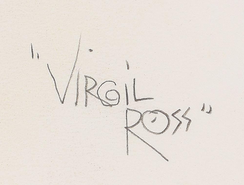 (Warner Brothers Studios, circa 1990s) Large original color model drawing by Virgil Ross featuring the Grinch in seven different poses, each showing the green Christmas-stealer with a different emotion on his face. Accomplished in graphite and colored pencil on untrimmed 17 x 13.5 animation paper, signed at the bottom in pencil, "Virgil Ross." In fine condition. This drawing was done to be sold in the Warner Brothers Studio stores in the 1990s.