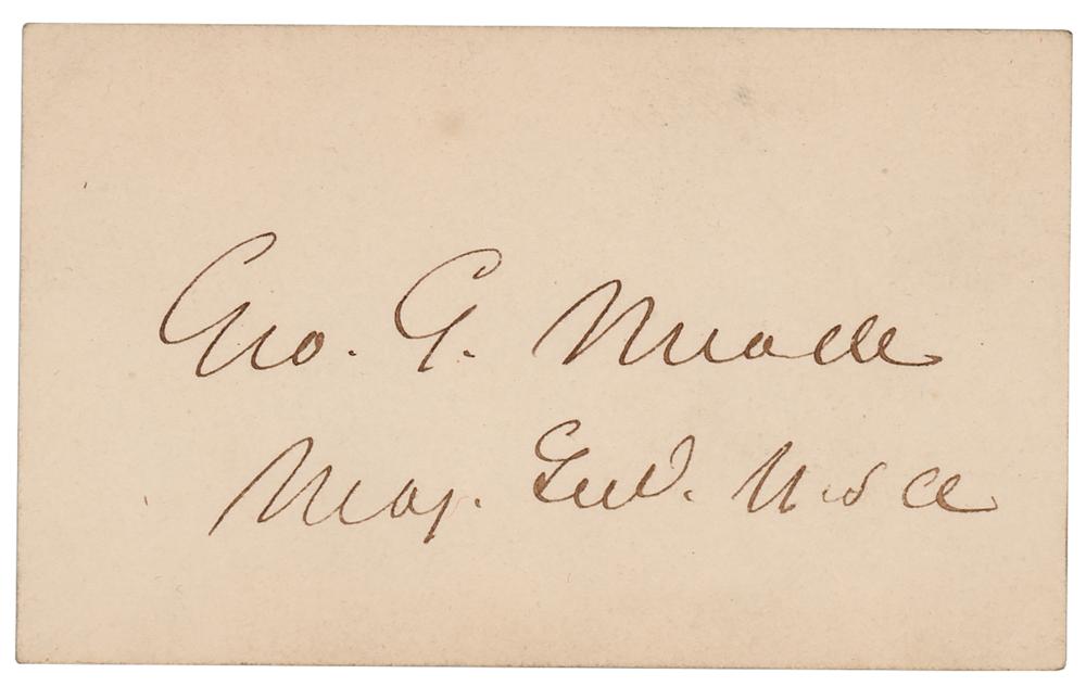 Neatly penned ink signature, "Geo. G. Meade, Maj. Gnl. USA,” on a 3.5 x 2.25 card. In very fine condition.