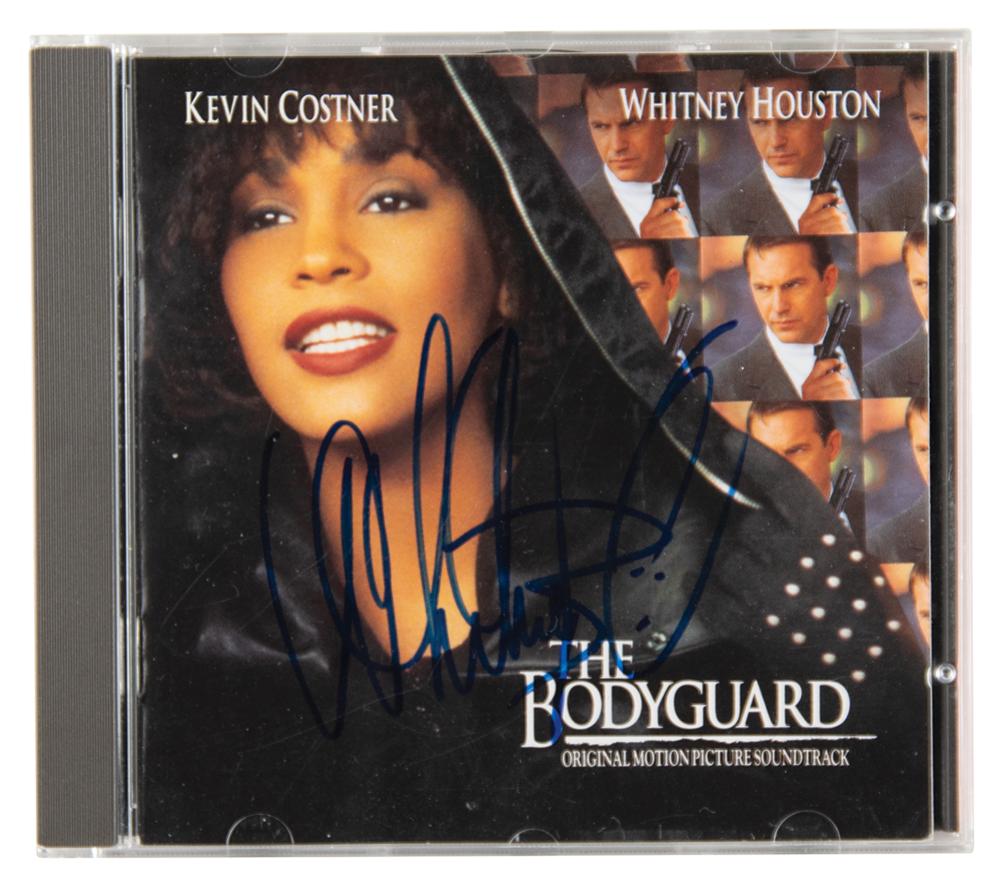 The Bodyguard: Original Motion Picture Soundtrack CD signed on the front of the booklet in blue felt tip by Whitney Houston. In fine condition. The CD is included. This became the best-selling soundtrack album of all time, with sales of over 45 million copies worldwide, and won the Grammy Award for Album of the Year.