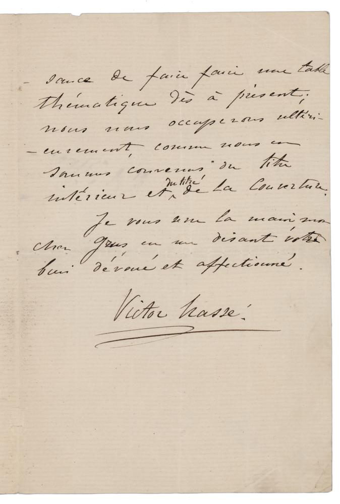 French composer (1822-1884) who won the Prix de Rome in 1844. Two items: an AMQS, one page, 4 x 5, April 4, 1870, signed and inscribed in fountain pen, “A Monsieur Ernest Melotte, Victor Masse,” who adds 11 neatly penned bars of music from an unknown piece of music; and an ALS in French, signed “Victor Masse,” one page both sides, July 22, 1877, an untranslated handwritten letter to a friend. In overall fine condition.