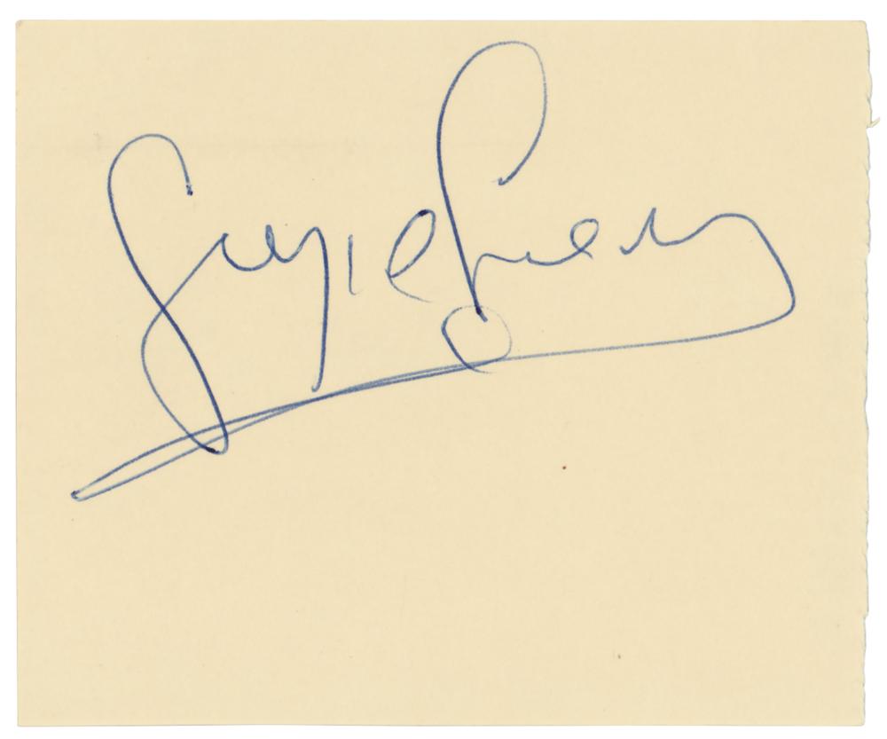 Vintage ballpoint signature, "Sergio Leone,” on an off-white 3.5 x 3 slip. In very fine condition.
