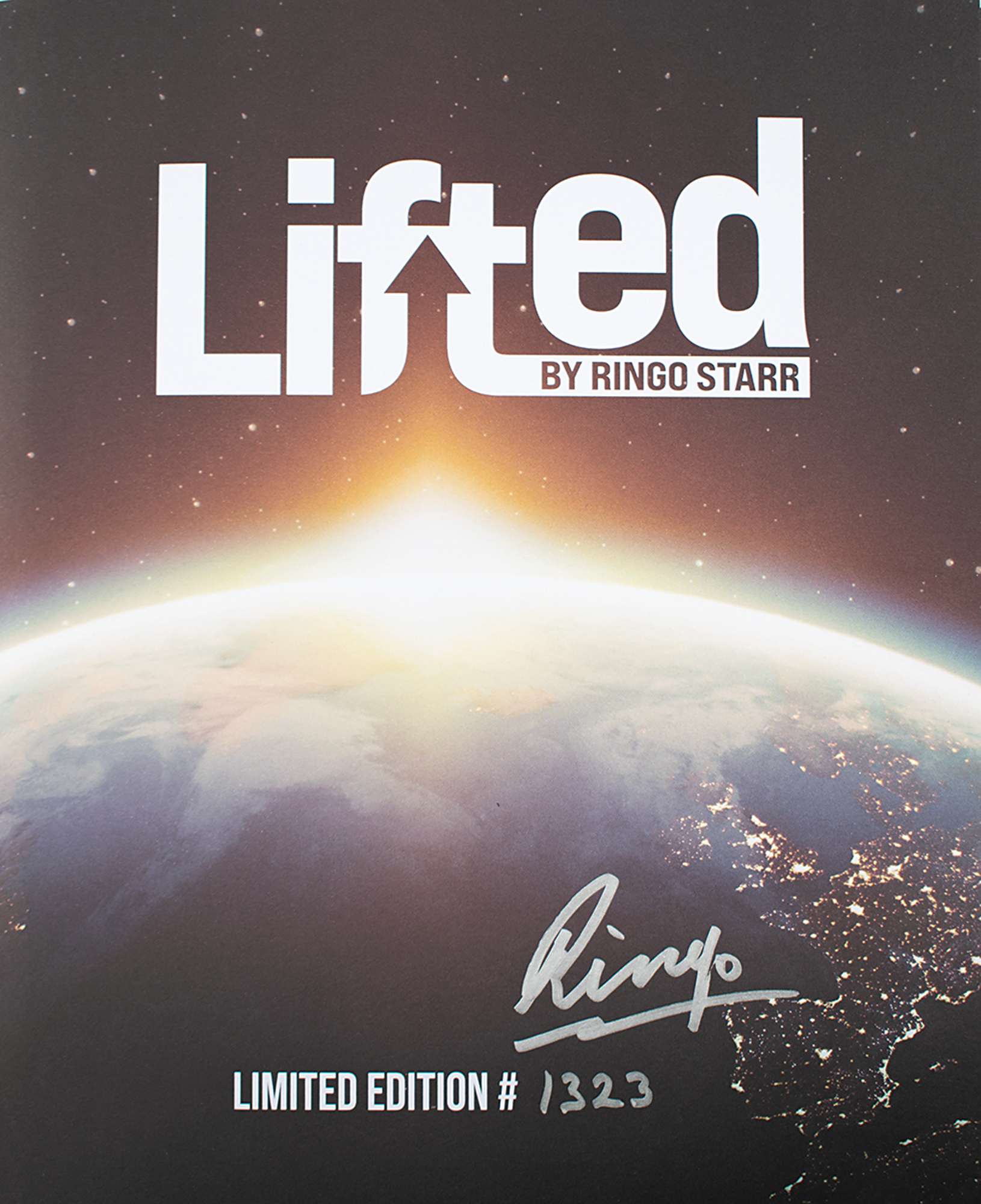 Signed book: Lifted by Ringo Starr: Images and Memories In My Life with the Beatles from Across The Universe. Limited signature edition, numbered 1323. Culver City, CA: Julien's Auctions, 2022. Hardcover with dust jacket and presentation box, 9.75 x 11.25, 224 pages. Signed on the colophon in silver ink, "Ringo." Includes its cloth carrying bag. In very fine condition. A beautifully designed limited-release Beatles book containing rarely seen images overlaid with captions and quotes by Starr with help from best-selling author and award-winning TV writer-producer David Wild.