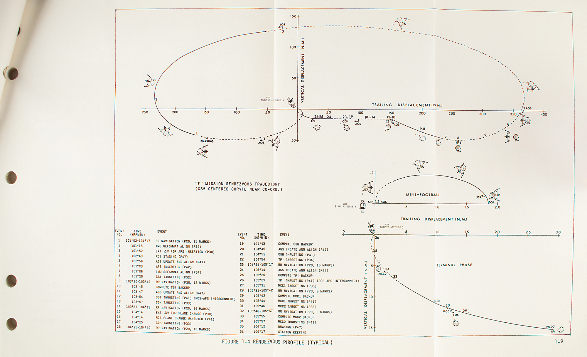 Staple-bound NASA manual entitled “Preliminary Apollo 10 Flight Plan, AS-505 / CSM-106 / LM-4," 235 pages, 8 x 10.5, March 12, 1969, prepared by the Flight Planning Branch, Flight Crew Support Division of the Manned Spacecraft Center. The manual is comprised of five sections: general summaries and descriptions, maneuver update forms, detailed timeline, detailed test objectives, and consumables analysis. In fine condition, a small tear to left edge under rusted stale, and toning and slight wear to back cover.