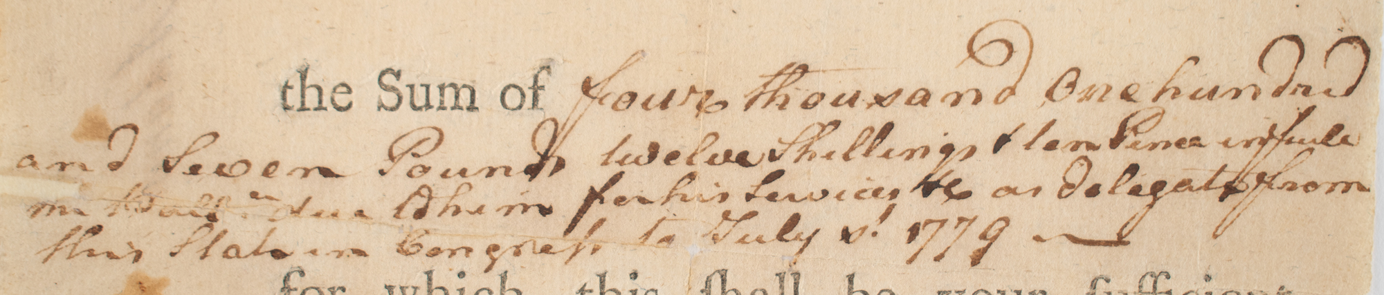 Revolutionary War-dated pay order signed twice by Samuel Adams, for his services as a delegate to the Continental Congress