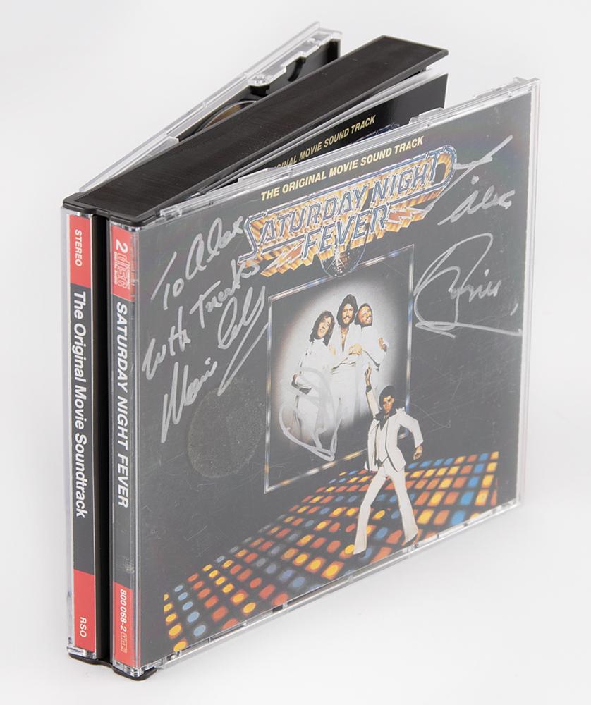 Double CD for the Saturday Night Fever movie soundtrack, signed and inscribed on the front cover in silver ink, "To Alex, with thanks, Maurice Gibb," "To Alex, Barry Gibb," and "Robin Gibb." The consignor notes that the autographs were obtained by a person who worked for various record companies in the 1980s and 1990s and who gained access to groups at numerous concerts. In fine condition. The CDs are included. Accompanied by a certificate of authenticity from Tracks.