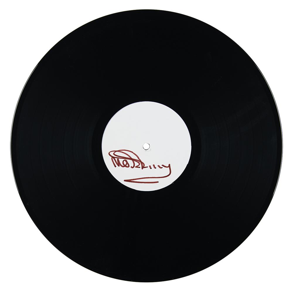 Uncommon test pressing of Low In High School, signed on the blank label in brown felt tip by The Smiths' legendary baritone frontman, "Morrissey." In very fine condition.