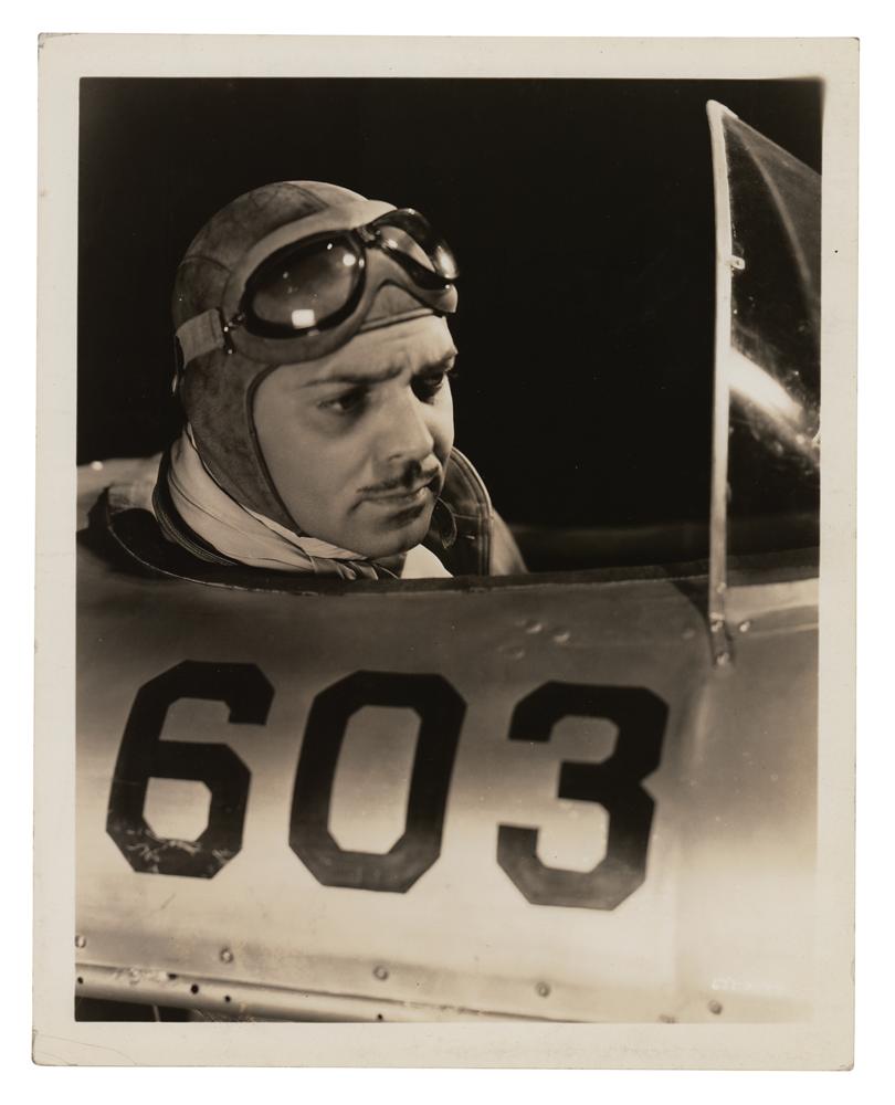 Beautiful original vintage glossy 8 x 10 silver gelatin studio photo of actor Clark Gable as pilot Jules Fabian in the 1933 film Night Flight, which was also known as Dark to Dawn. Reverse bears an affixed film caption, a date stamp of August 21, 1933, and an MGM stamp crediting the photograph to Milton Brown. In fine condition.