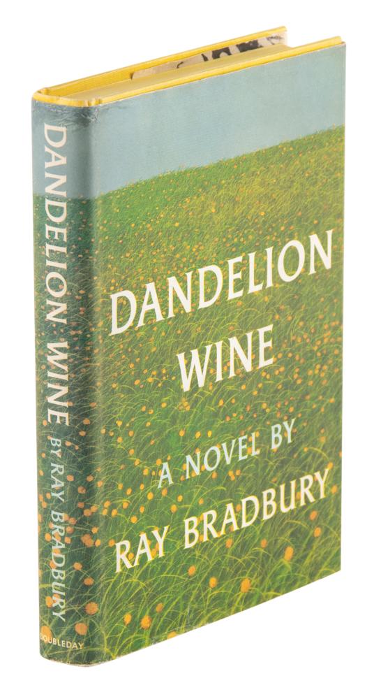 Signed book: Dandelion Wine. First edition. NY: Doubleday & Company, Inc., 1957. Hardcover with a professionally restored original dust jacket, 5.75 x 8.5, 281 pages. Attractively signed and inscribed on the first free end page in orange and pink felt tip, "This ‘Dandelion’ is for Matt Stiller!, with good wishes! From, Ray Bradbury, Jan. 16th 1991," who draws a large sketch of the book's title flower. In fine condition, with some faint toning, and several small tape stains, to the signed page; the dust jacket is clipped.