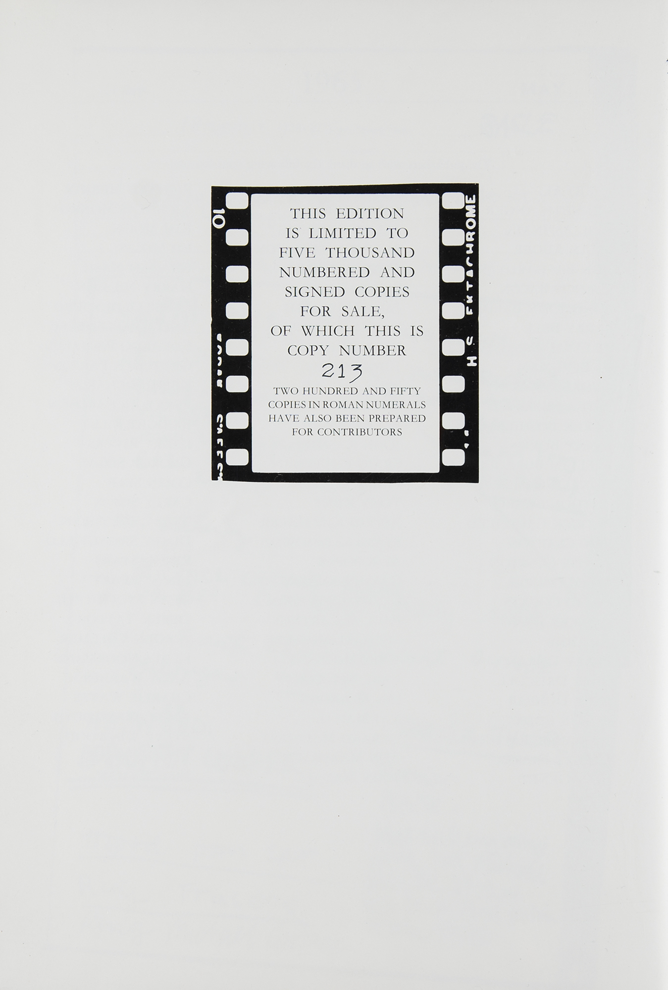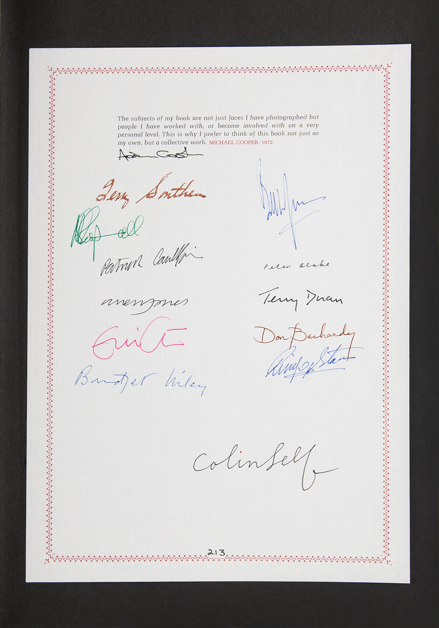 Signed book: Blinds & Shutters. Limited edition, numbered 213/5000. England: Genesis Publications, 1990. Hardcover with presentation box, 11 x 15.5, 368 pages. Signed on a special tipped in page in various inks by Eric Clapton, Ringo Starr, Bill Wyman, Peter Blake, Neil Aspinall, Don Bachardy, Patrick Caulfield, Adam Cooper, Terry Doran, Allen Jones, Bridget Riley, Colin Self, and Terry Southern. In fine condition, with one bumped corner to the box. This remarkable book was created as a tribute to rock and roll photographer Michael Cooper—the photographer behind the famous Sgt. Pepper's album sleeve—and features over 600 of his images, many of which were previously unpublished. The books in the limited edition were signed by various groups of Cooper's friends, and this is a particularly desirable combination with Eric Clapton, Starr of the Beatles, Wyman of the Rolling Stones, Sgt. Pepper’s cover artist Blake, and other musical notables—a truly magnificent work.