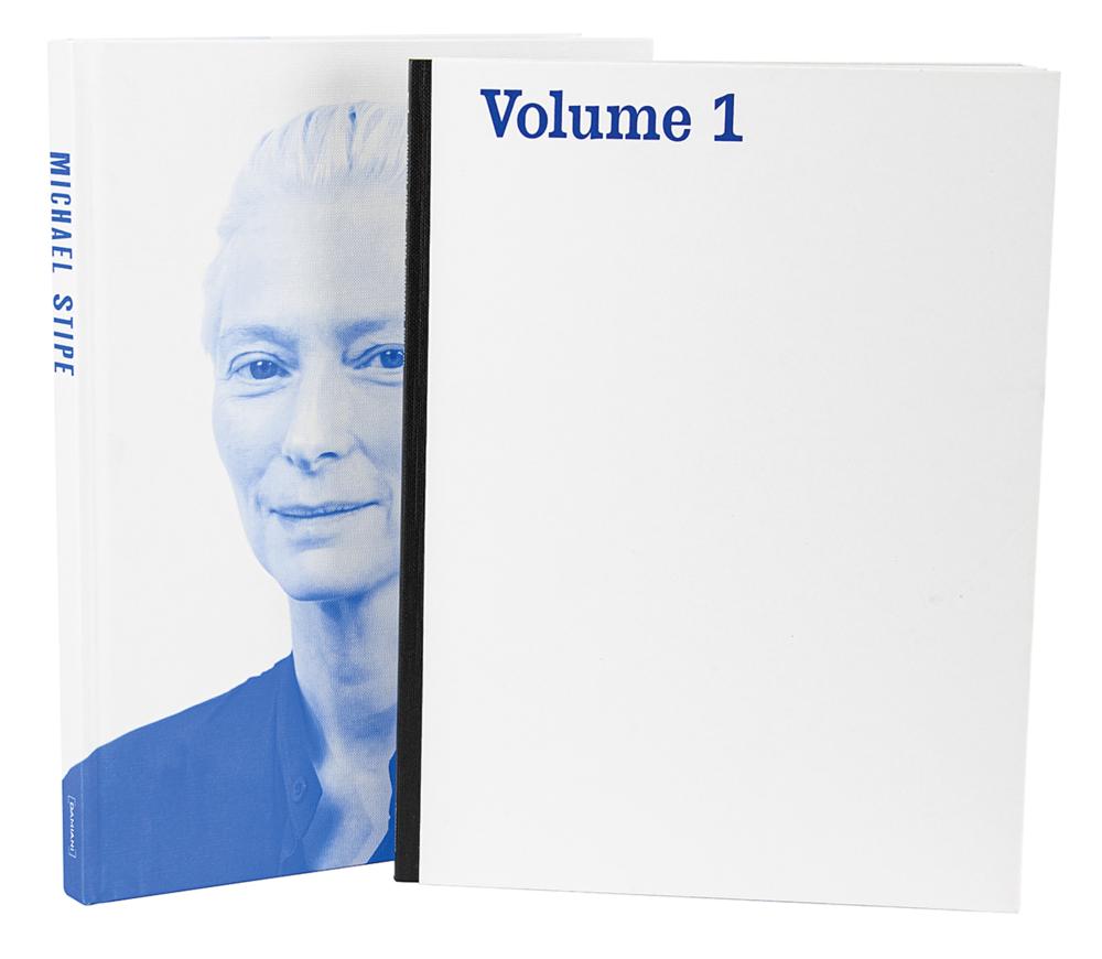 Four items related to rock band R.E.M.—a first edition of the photo book Michael Stipe, hardcover, published by Damiani in 2021, signed by Stipe in black felt tip on a bookplate affixed to the opening page; a first edition of the photo book Volume 1, hardcover, published by Damiani in 2018, signed on the inside front cover in pencil by Stipe; an official ‘R’ hologram-style RIAA multi-platinum sales award “to commemorate the sale of more than 4,000,000 copies of the Warner Bros. Records album ‘Monster’”; and an official ‘R’ hologram-style RIAA multi-platinum sales award “to commemorate the sale of more than 4,000,000 copies of the Warner Bros. Records album, cassette and C.D. ‘Out of Time.’” Both sales awards are framed with their plates and four CDs, measure to overall sizes of 21 x 17, and retain their original backings with Fitzgerald Hartley Marketing labels. In overall fine condition, with some wear to the frames. The 2021 photo book includes its original shipping box.