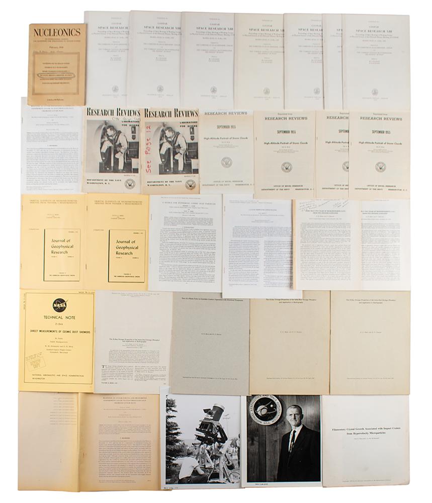 - Four offprints of "More Than Two Years of Micrometeorite Data from Two Pioneer Satellites" by O. E. Berg and U. Gerloff (1971).