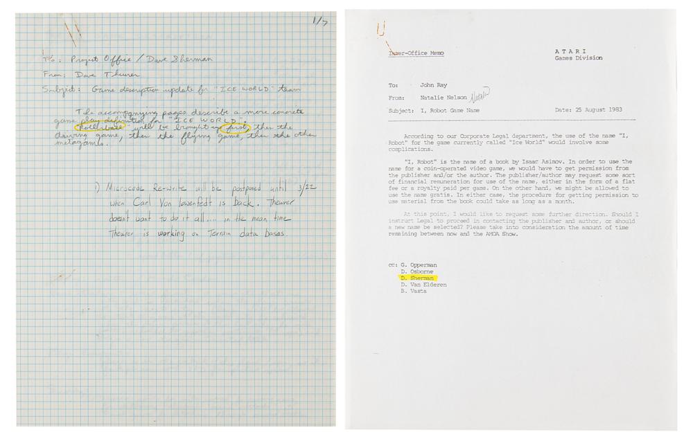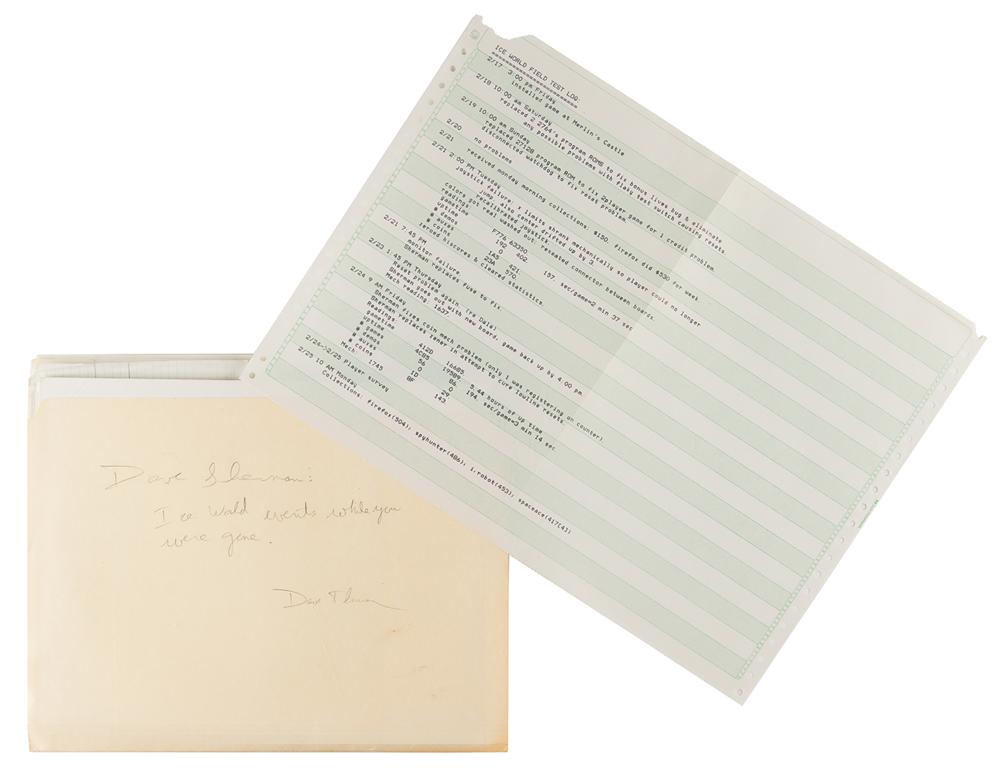 - A 7-page handwritten “Ice World” update from pioneer game designer Dave Theurer