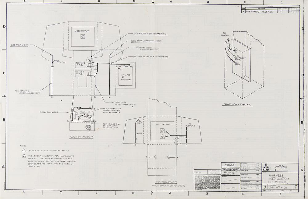 - A ‘Computer Assisted Troubleshooter (CAT) Box Logic Board” schematic, a standardized testing system that all games were supposed to support and give test points to interface