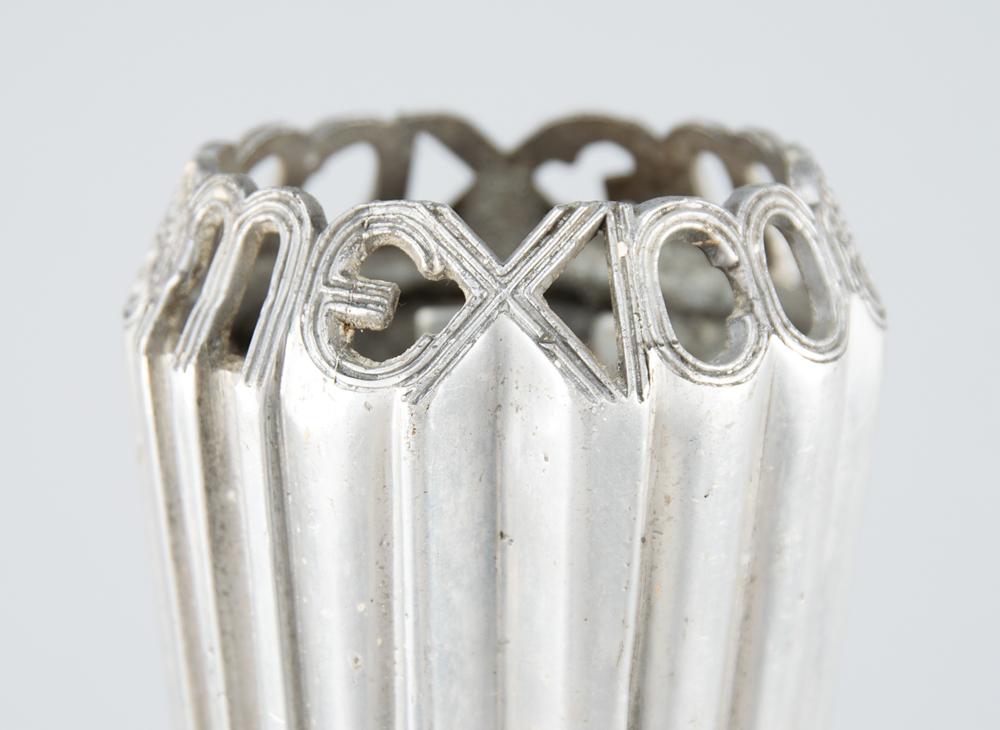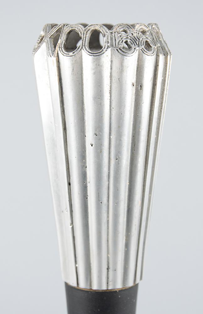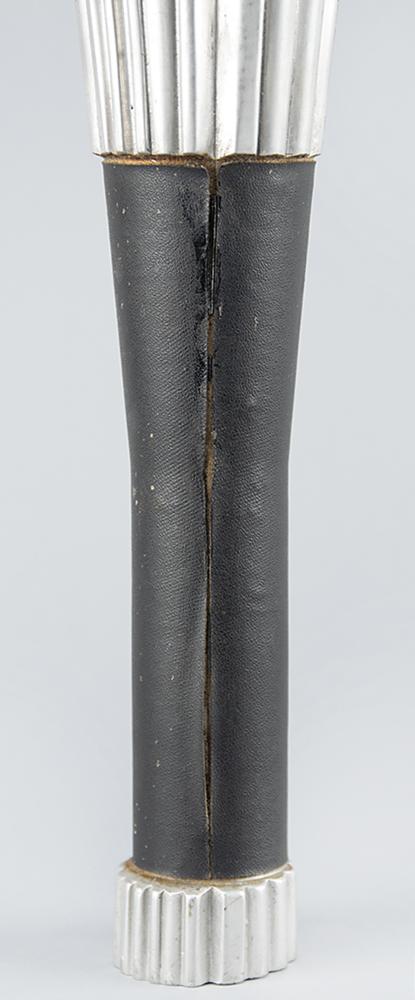 Scarce official 1968 Mexico Olympics 'type 2' torch, comprised of white cast metal and a black leather handle, measuring 17.5″ in length and 4.25″ at its widest point. The white cast metal body is grooved and the top features "Mexico 68" twice around the rim. Scattered marks and dings to body, and some marks and slight seam separation to the leather handle. The torch relay recreated the route taken by Christopher Columbus to the New World, beginning on August 23, 1968, in Olympia, Greece. It notably traveled through Columbus's birthplace in Genoa, where he set sail from Palos in Spain, and the first land he reached in San Salvador. In all, there were 2,778 torchbearers on the 13,546 km route. Only the third ‘type 2’ torch that we have offered.