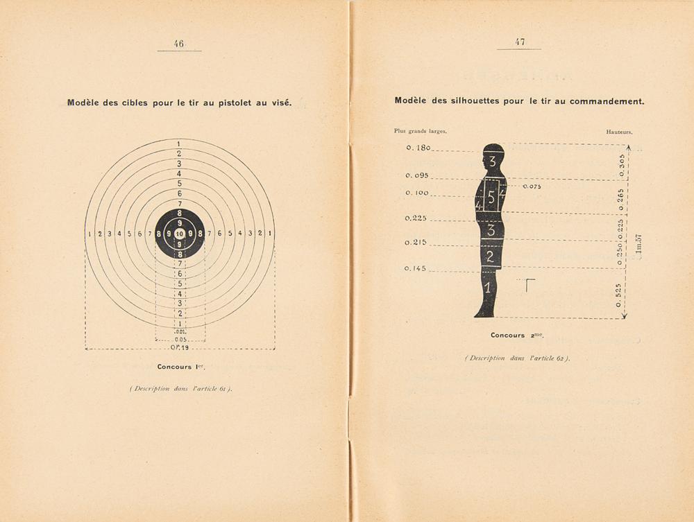 French-language official regulation booklet for the shooting events held as part of the Athens 1906 Intercalated Olympics, 51 pages, 5.5 x 8.25, published by the Olympic Committee in Athens in 1906. In fine condition.