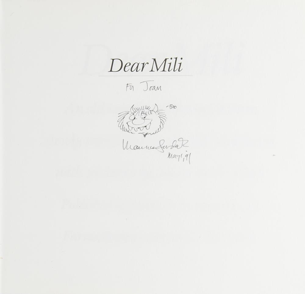 Signed book: Dear Milli. First edition. NY: Farrar, Straus and Giroux, 1988. Hardcover with dust jacket, 10 x 9.25. Signed and inscribed on the half-title page in black felt tip, "For Joan, Maurice Sendak, May 1, 91," adding a great sketch of Carol from Where the Wild Things Are, saying "Boo!" In very fine condition.