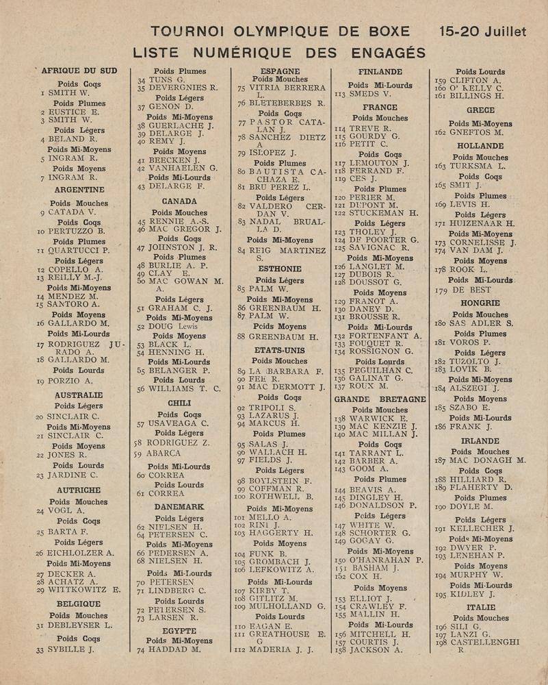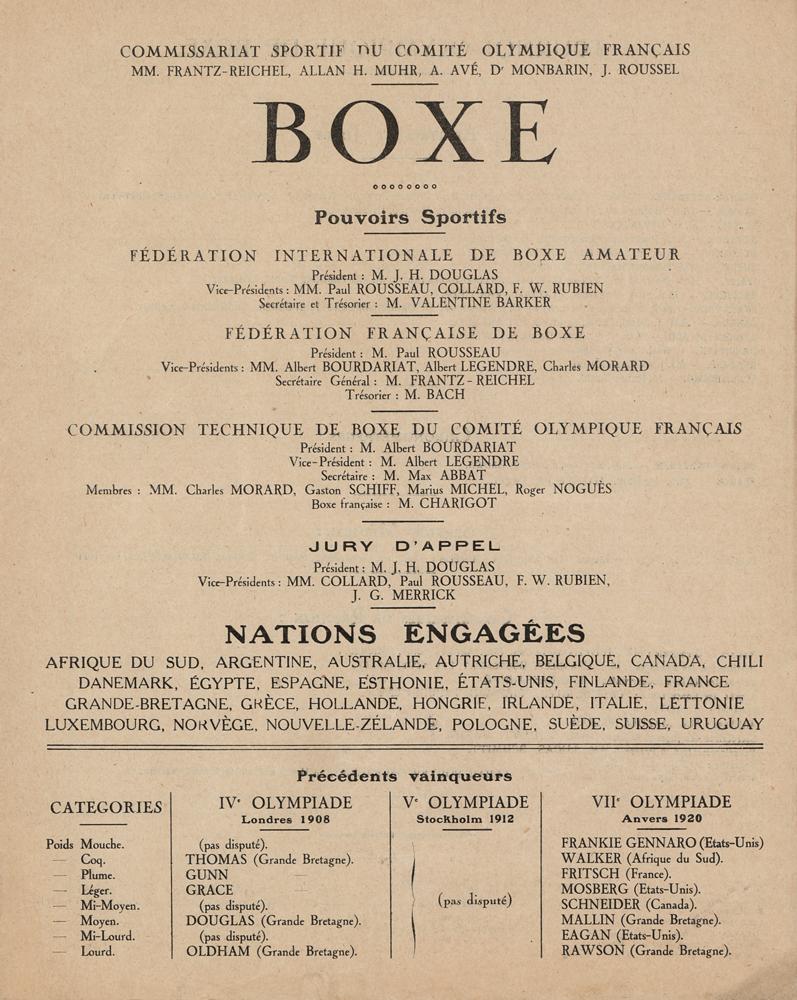 Paris 1924 Olympics Daily Program for Boxing
