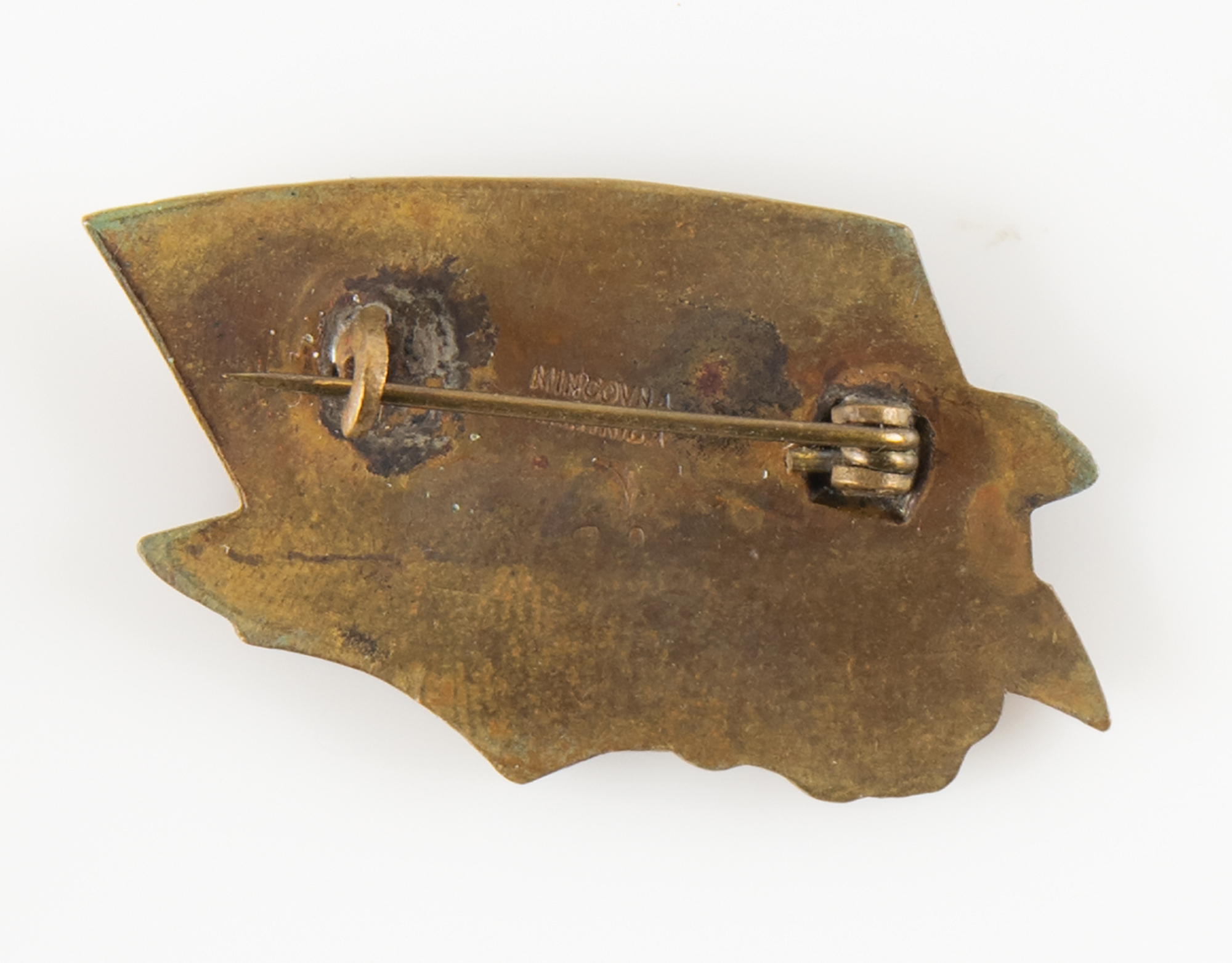 Handsome Czech national team pin from the Berlin 1936 Summer Olympics. Bronze and enamel, 37 mm x 22 mm, featuring the flag of Czechoslovakia over the Olympic rings and banner text, "Olympiada Berlin, 1936." In fine condition.