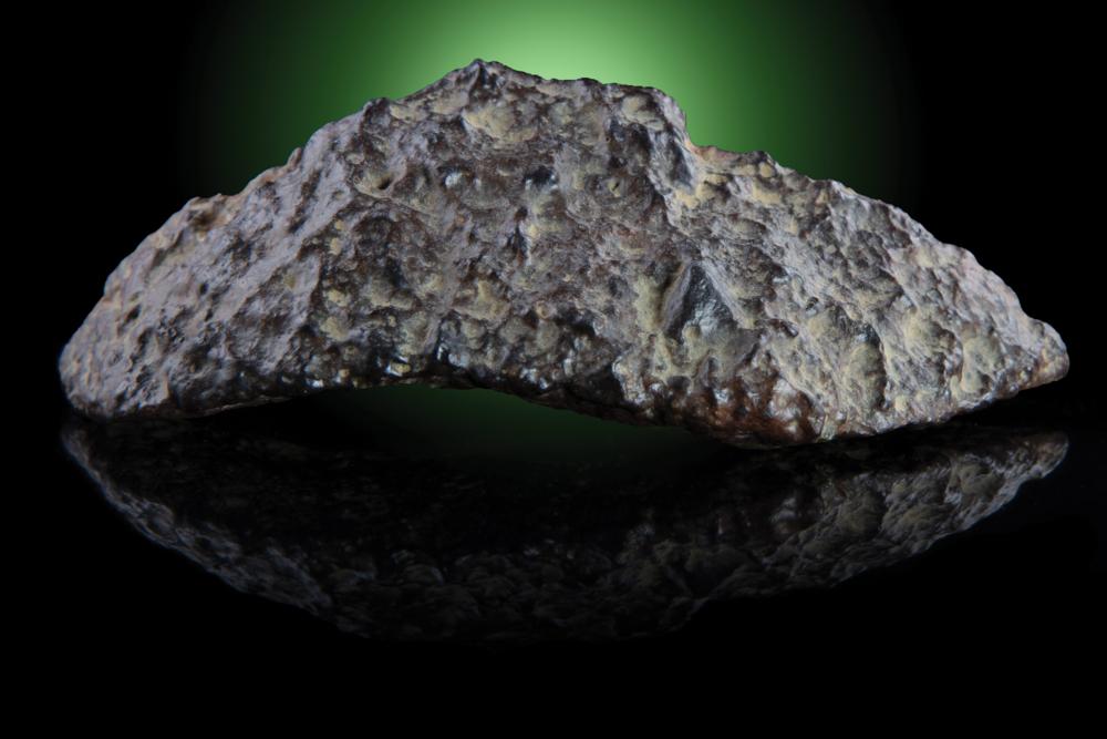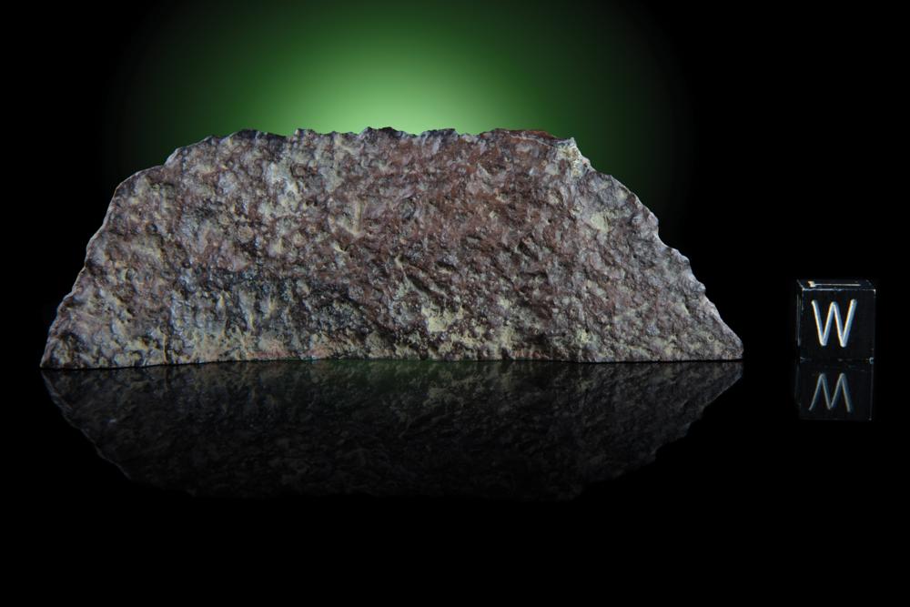 An early hot desert find, DAG 521 consisted of a single stone weighing 1,567 grams which was recovered in 1997 on a limestone plateau in Libya, known as Dar al Gani. It was examined and classified by the Museo Nazionale dell’Antartide, Universita di Siena in Siena, Italy. DAG 521 was acquired and prepared by meteorite expert Allan Lang of R.A. Langheinrich Meteorites, shortly after its 1990s recovery and has remained in his collection until now.