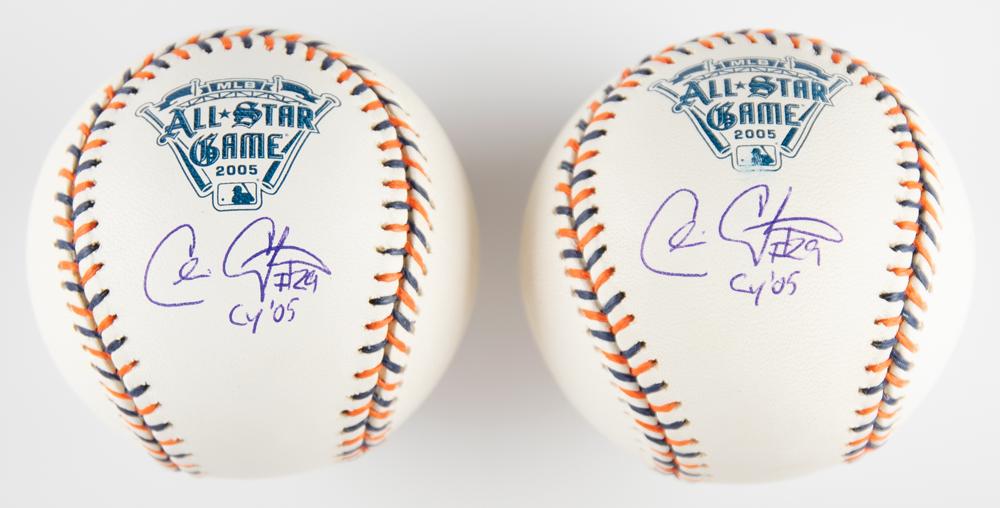 Two official Rawlings 2005 All-Star Game baseballs, each signed on the side panel below the logo, "Chris Carpenter, #29, CY '05." In overall fine condition, with MLB and Tri-Star holograms affixed to rear of each baseball. Accompanied by certificates indicating that the balls were signed at a Tri-Star show in 2005. Carpenter went 21-5 with a 2.83 ERA in 2005, earning his first All-Star appearance and winning his only Cy Young Award.