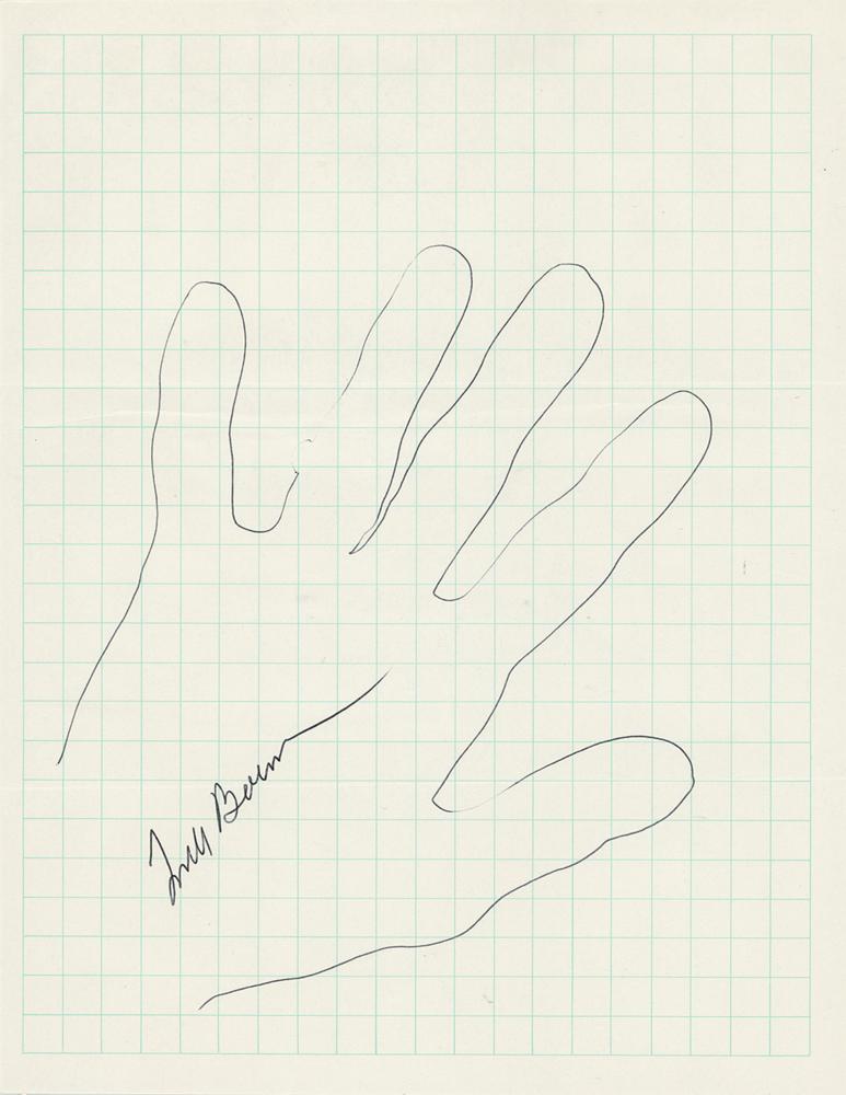 Original traced outline of Frank Borman's hand, accomplished by him in black ballpoint on an 8.5 x 11 sheet of graph paper, signed in the center, "Frank Borman." In fine condition, with mailing folds and a light horizontal crease.