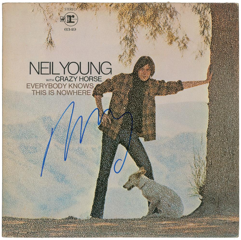 Everybody Knows This Is Nowhere album signed on the front cover in felt tip by Neil Young. In fine condition. The record is included.