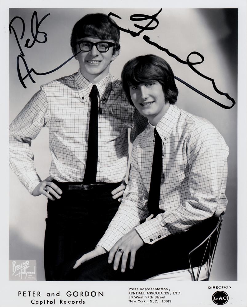 Glossy 8 x 10 Capitol Records publicity photo of Peter Asher and Gordon Waller, signed by both in black felt tip. In fine condition.