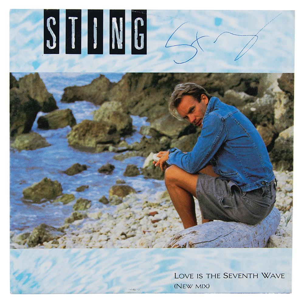 A&M Records 45 RPM Dutch pressing of the Sting single record ‘Love Is the Seventh Wave / Consider Me Gone (live),’ signed on the front cover in blue ballpoint by Sting. The consignor notes that the autograph was obtained in the lobby of the Rijnhotel in Arnhem, Holland, on December 21, 1985, prior to Sting’s performance at Rijnhal in Arnhem on the same day. In fine condition. The record is included. Accompanied by a certificate of authenticity from Tracks.