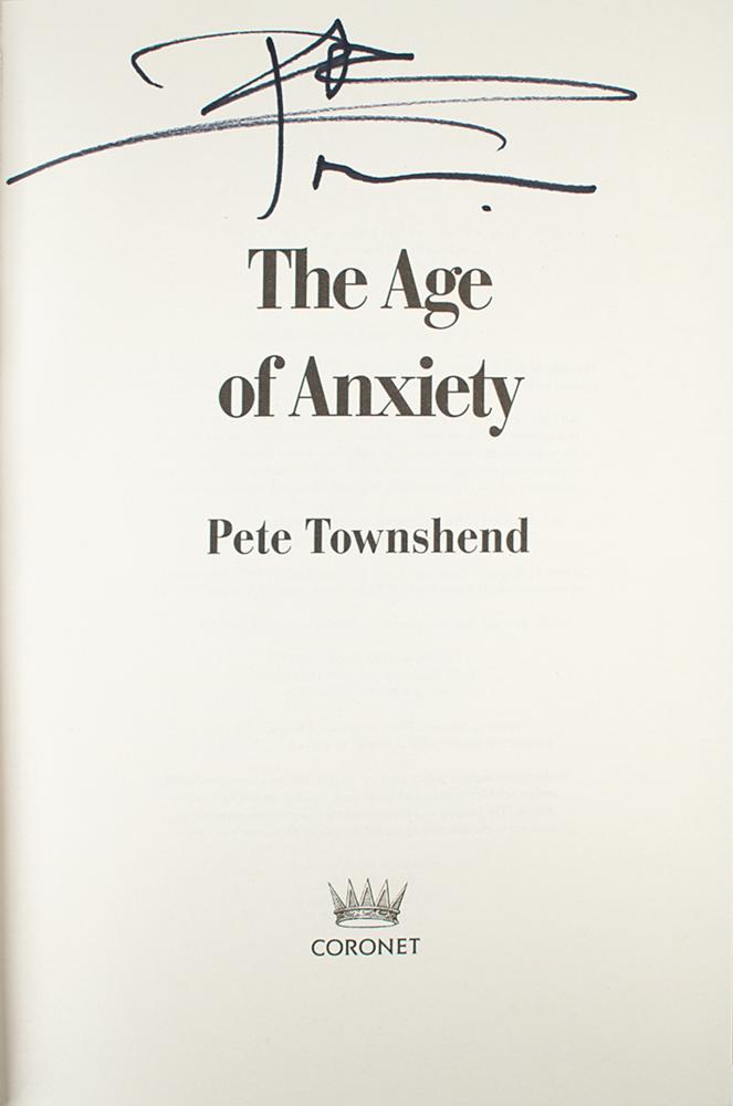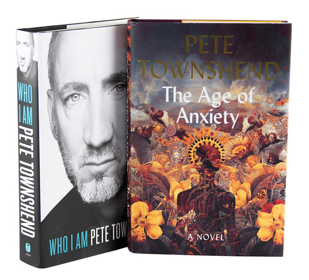 Two first edition books, both hardcovers with dust jackets—The Age of Anxiety and Who I Am—both signed on the title page in black felt tip by Pete Townshend. In overall fine condition.