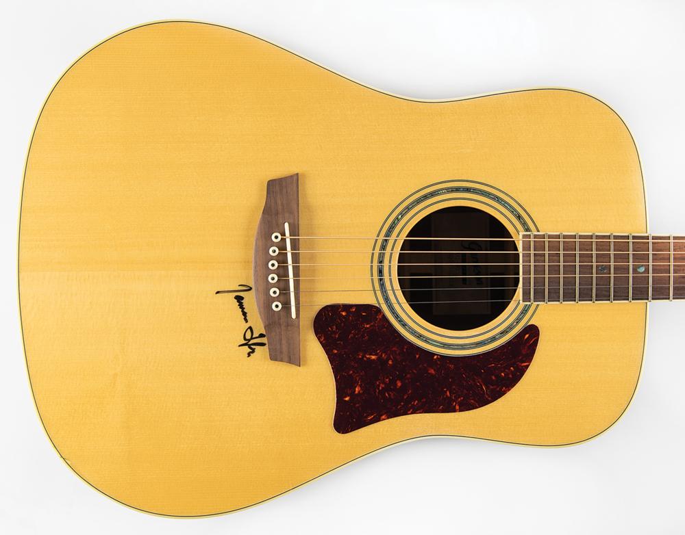 Garrison AG-600 natural-finish acoustic dreadnought guitar, signed on the body in black felt tip by James Taylor. In fine condition. Accompanied by a hardshell case.