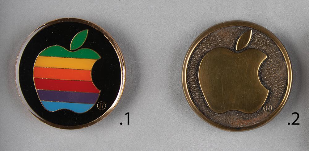 10. Two Apple rainbow logo pins that were sold in small and large sizes in Apple’s 1983 Gift Catalog.