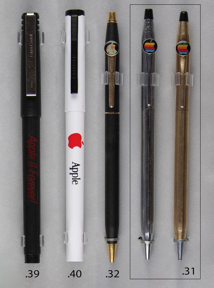 31. Silver and gold-tone Cross Apple pens sold in the company’s 1983 and 1986 gift catalogs; the silver version is the rarer of the two.