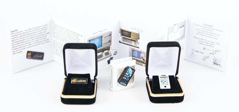 Four limited edition Apple items related to the Lisa computer and the iPhone smartphone: